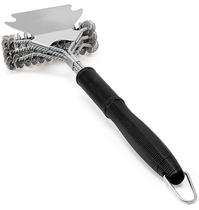 - El cepillo para parrilla tiene una gran zona de limpieza igual a tres cepillos de limpieza individuales con un rascador ancho que realiza una limpieza completa.