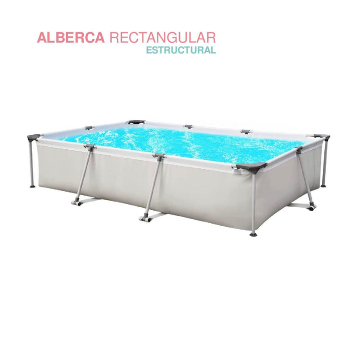 Piscina con marco de metal, el forro es de plástico, puedes jugar con tu familia inmediatamente de forma simple y rápida.