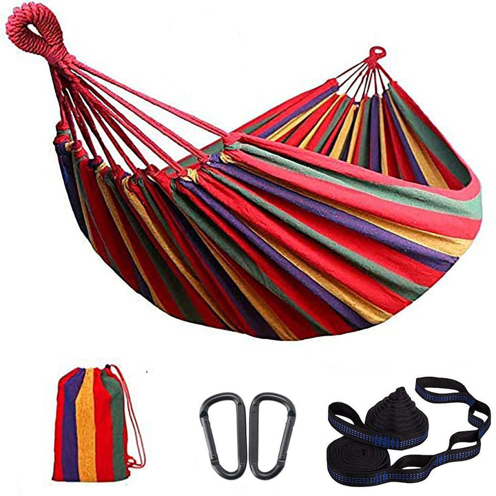 Hamaca hecha a mano: estas hamacas están tejidas a mano por expertos. Proporcionando una durabilidad superior que aguanta nuestro peso corporal durante años. Material duradero: la hamaca está hecha de 70% algodón y 30% poliéster, muy suave y cómoda. Esta mezcla de algodón / poliéster de tejido apretado absorbe bien la humedad. Hamaca transpirable: gracias al material permeable al aire, no sudará. Secado rápido. Uso en interiores o exteriores: siéntase libre de usarlos en interiores o exteriores. Oficina, jardín o patio trasero. Bolsa portátil para un fácil transporte: deje la bolsa con cordón en el patio trasero, la cabaña o cuélguela en el porche. Puede llevarlo para acampar o llevarlo a cualquier lugar interior / exterior.