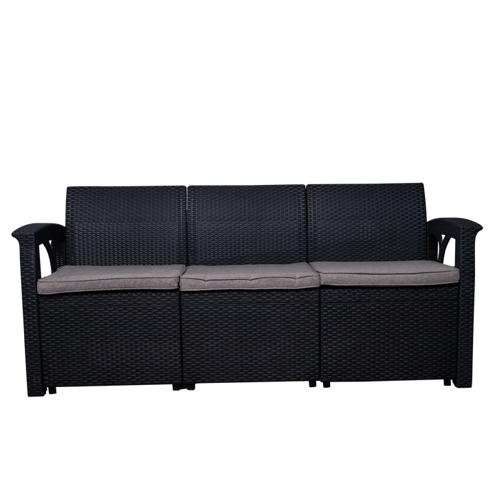 Ideal para Exterior, éste Sillón está diseñado para todo tipo de clima, resistente a la intemperie y con protección contra rayos UV. El Sillón de Rattan de 3 plazas incluye cojines.