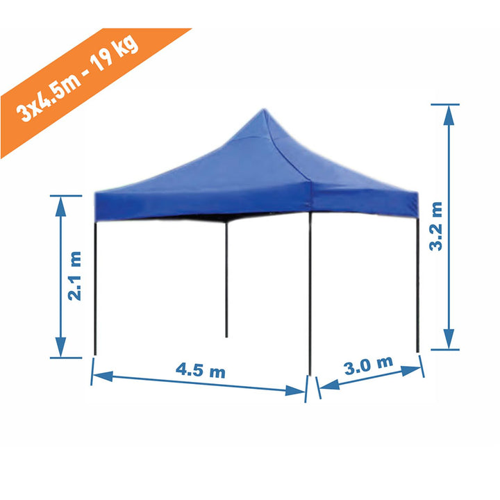 El toldo marca Swiss Outdoors de 3x4.5 plegable, es creado con los mejores materiales para garantizar durabilidad, su estructura es de acero, el cual lo hace sumamente resistente, además cuenta con una capa de poliéster el cual brinda seguridad y resistencia, es ideal para celebrar reuniones al aire libre, jardines o eventos de ventas, es útil también para temporadas de lluvia o sol intenso. Gracias a su material de alta calidad resiste a los rayos ultra violetas.